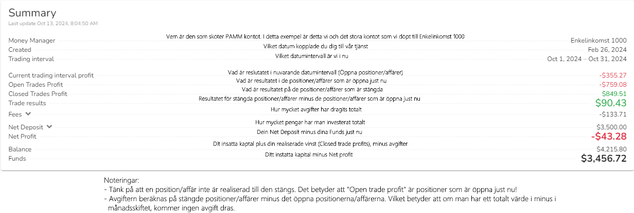 - Kontoförvaltaren måste investera sina egna medel i kontot och får endast provision när handeln är lönsam, vilket ger dem ett incitament att handla så bra som möjligt.