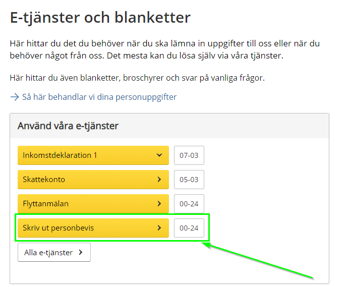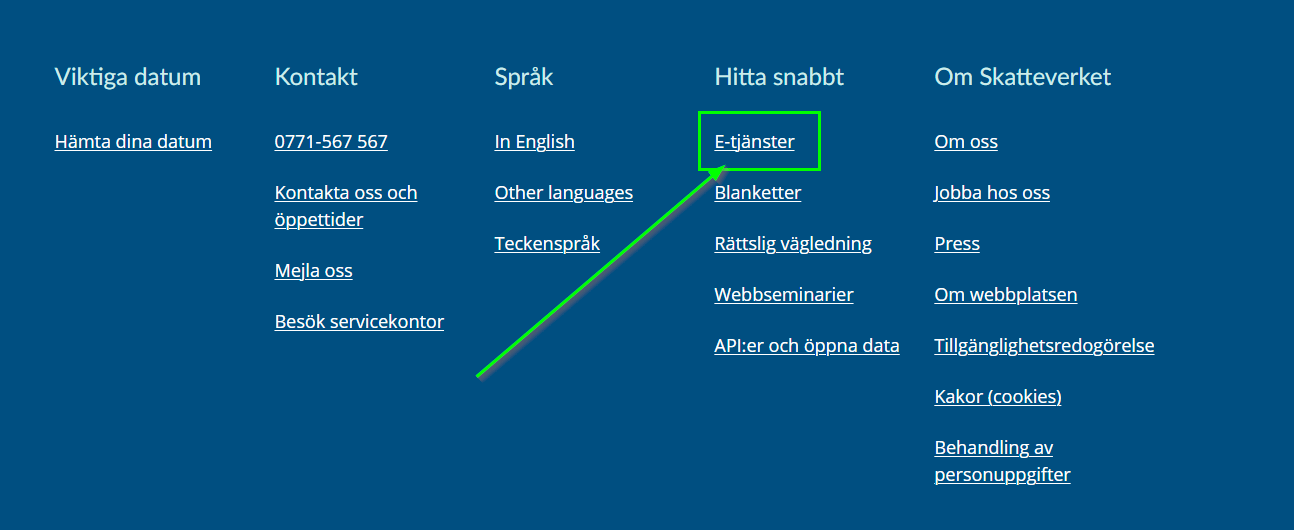 3. Scrolla längst ner på sidan och klicka på ”E-tjänster” under ”Hitta snabbt”